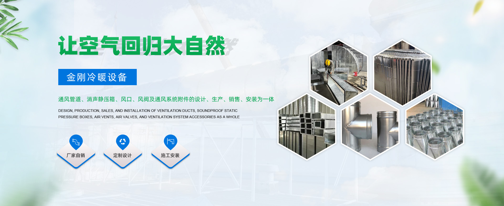 重慶金剛冷暖設(shè)備有限公司是集通風(fēng)管道、消聲靜壓箱、風(fēng)口、風(fēng)閥及通風(fēng)系統(tǒng)附件的設(shè)計(jì)、生產(chǎn)、銷售、安裝為一體的專業(yè)企業(yè)。擁有日生產(chǎn)、加工鍍鋅板、不銹鋼板、各型機(jī)制風(fēng)管3000平方米的能力。我司產(chǎn)品形式多樣,結(jié)構(gòu)新穎,連接牢靠,強(qiáng)度高、密封性好,符合規(guī)范、節(jié)省投資、安裝方便,能夠滿足廣大客戶的各種要求。公司堅(jiān)持以“卓越、創(chuàng)新、快捷、誠(chéng)信”的服務(wù)理念,為廣大客戶提供高質(zhì)、高效、方便的服務(wù)。在完建的工程中取得了廣大客戶的一致好···